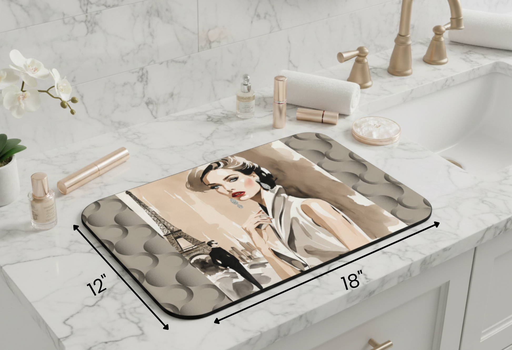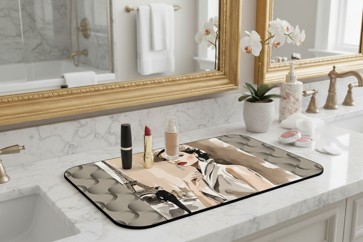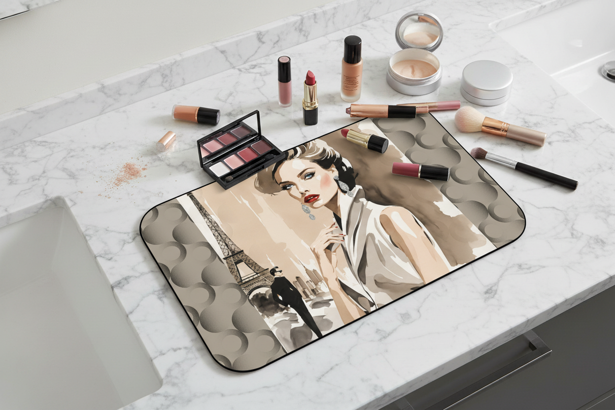 - Each mat is crafted from thick neoprene for durability, cushion, and easy maintenance — perfect for daily glam routines.